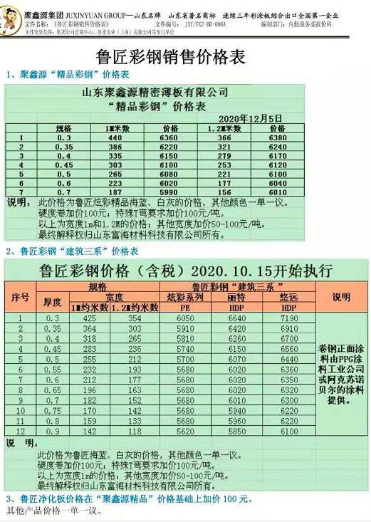 12月9日河北燕赵蓝天彩涂板出厂价格上调200元