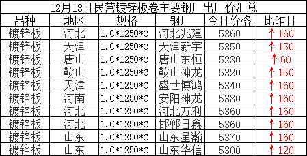 12与18日(16:00)民营镀锌板卷钢厂出厂价格汇总