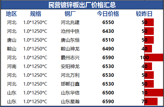 8月11日邯郸日鑫镀锌板出厂价格上调50元