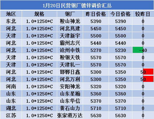 1月20日河北万利有花镀锌板出厂价格上调50元