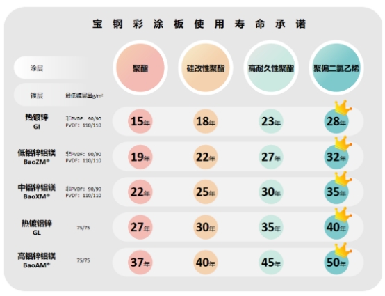 宝钢在PVDF氟碳涂层钢板上有25年的生产和质量管理经验,新开发的FEVE氟碳涂层钢板是PVDF涂层钢板的重要补充。