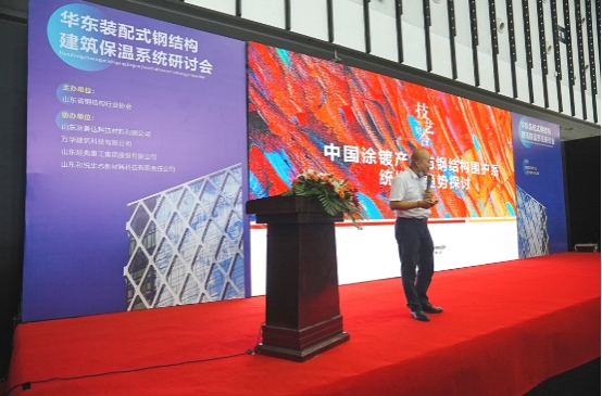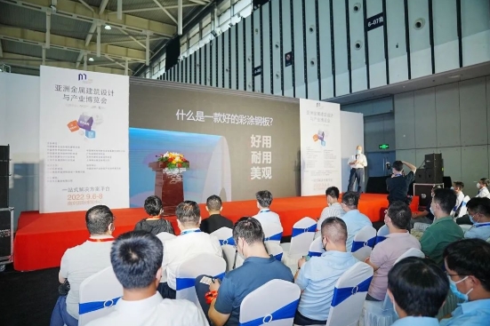论坛上,新美达市场部曹峰总监发表了“中国涂镀产品与钢结构围护系统发展趋势探讨”的主题演讲,从表现力、适配性、产品保障三个维度,阐述如何打造一块高端的彩涂板。