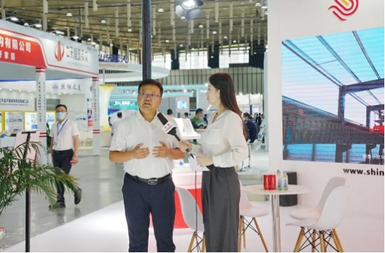 益胜光总经理接受央视记者采访,为其详细地介绍了本次展会新美达的展品信息和公司概况,释义了新美达公司“至诚致善 相融共生”的诚善文化,同时解读了中国色彩美学对现在工业建筑的发展方向。