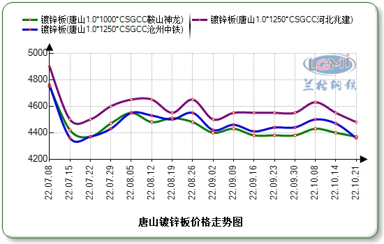 本周,唐山市场镀锌板卷价格整体下跌。据兰格钢铁云商平台监测,现镀锌1.0mm价格:兆建有花无花4480元,神龙4370元,天津新宇4470元,志兴4440元,沧州中铁4360元,日鑫4410元;含税。