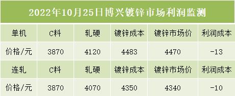 10月25日博兴镀锌市场利润监测