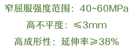 常规选材SECEN5、BYSE-N5具有极高的延伸率,适应于成形复杂与凸包高度较大零件,屈服强度相对较低(一般≤170MPa)。