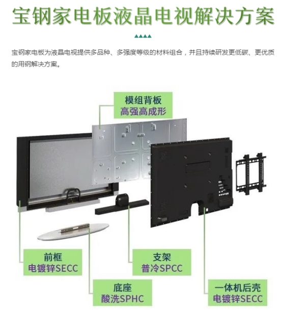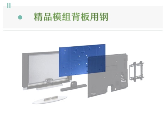 模组背板是电视机最大的金属结构件,支撑整个电视机面板、电子元器件。模组背板使用环境严苛,对钢材有很高的成形性能、表面性能、尺寸精度等要求。