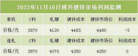 11月16日博兴镀锌市场利润监测