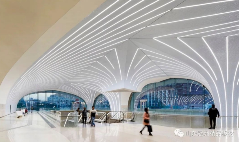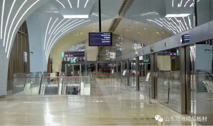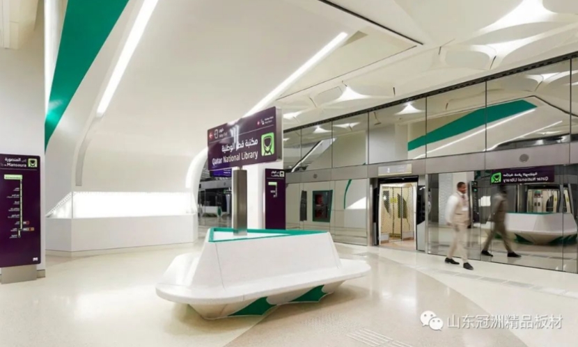 多哈地铁轻轨由红色,绿色和金色三条线路组成,共有37个车站,均选用冠洲精品彩涂板,用于车站屏蔽门上框以及内部立柱、墙面装饰等,为车站打造开放、明亮、亲切的室内环境增光添彩。
