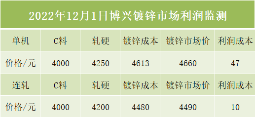 12月1日博兴镀锌市场利润监测