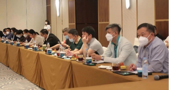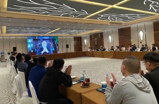 上午9时,新宇彩板客户年会暨代理商座谈会正式召开,新宇彩板总经理杜宝新以线上视频的形式,全程参与会议,副总经理赵永强、副总经理杜天宇及新宇彩涂体系代理商同仁出席会议现场。