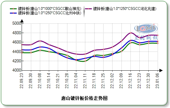 本周,唐山市场镀锌板卷价格部分上调。据兰格钢铁云商平台监测,现镀锌1.0mm价格:兆建有花无花4750元,神龙4620元,天津新宇4750元,志兴4740元,沧州中铁4620元,日鑫4630元,含税。