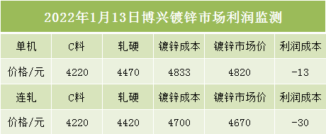 1月13日博兴镀锌市场利润监测