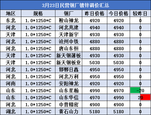 3月23日山东星瀚镀锌板出厂价格下调20元