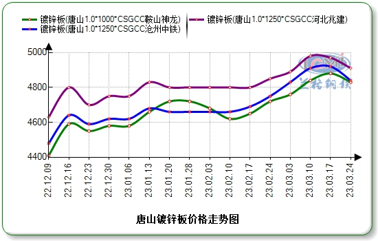 本周,唐山市场镀锌板卷价格下跌运行。据兰格钢铁云商平台监测,现镀锌1.0mm价格:兆建有花无花4930元,鞍山神龙4830元,天津新宇4850元,东恒4850元,沧州中铁4850元,日鑫4880元,万利4880元,含税。