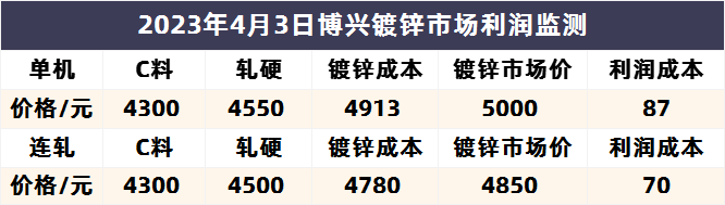 4月3日博兴镀锌市场利润监测