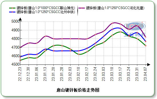 本周,唐山市场镀锌板卷价格下跌运行。据兰格钢铁云商平台监测,现镀锌1.0mm价格:兆建有花无花4820元,鞍山神龙4720元,天津新宇4780元,东恒4780元,沧州中铁4770元,日鑫4800元,万利4800元,含税。