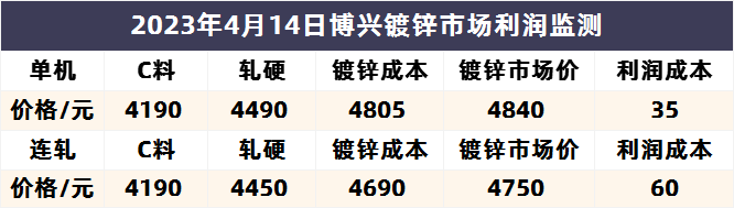 4月14日博兴镀锌市场利润监测