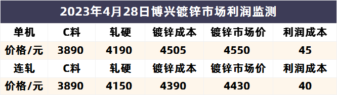 4月28日博兴镀锌市场利润监测