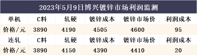 5月9日博兴镀锌市场利润监测