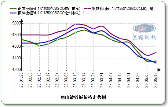 本周,唐山市场镀锌板卷价格先扬后抑。据兰格钢铁云商平台监测,现镀锌1.0mm价格:兆建有花无花4470元,鞍山神龙4350元,天津新宇4450元,东恒4380元,沧州中铁4320元,日鑫4470元,万利4470元,含税。