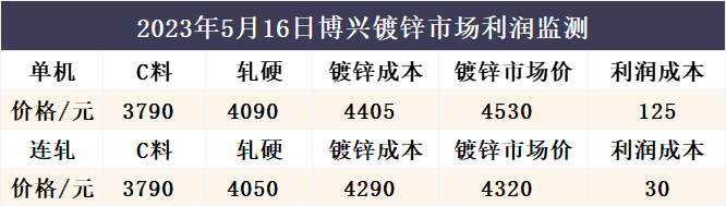 5月16日博兴镀锌市场利润监测