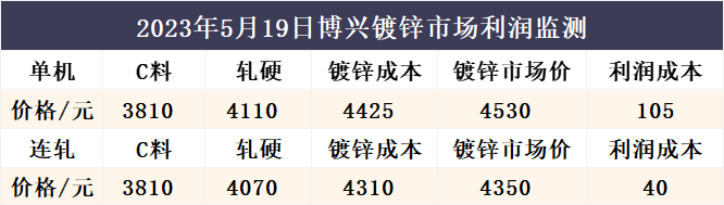 5月19日博兴镀锌市场利润监测