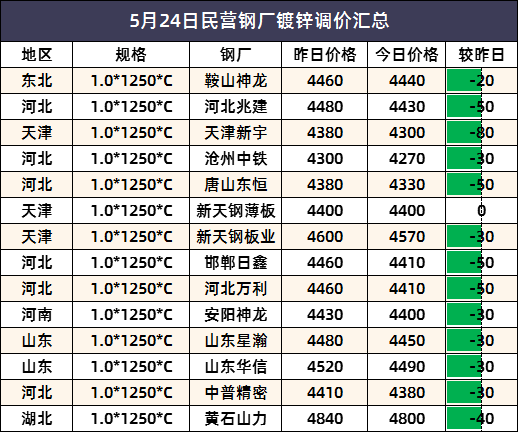 • 5月24日邯郸日鑫镀锌板出厂价格下调50元