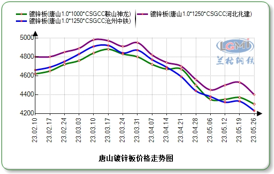 本周,唐山市场镀锌板卷价格大幅下行。据兰格钢铁云商平台监测,现镀锌1.0mm价格:兆建有花无花4430元,鞍山神龙4300元,天津新宇4300元,东恒4360元,沧州中铁4230元,日鑫4400元,万利4400元,含税。