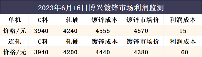 6月16日博兴镀锌市场利润监测