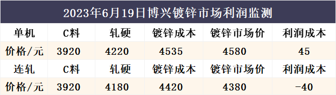 6月19日博兴镀锌市场利润监测