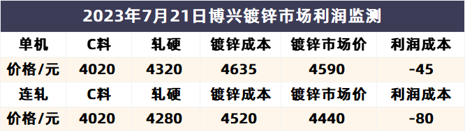 7月21日博兴镀锌市场利润监测
