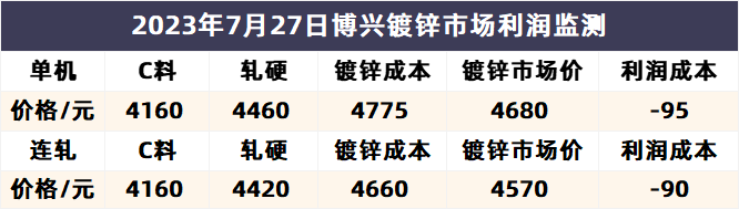 7月27日博兴镀锌市场利润监测