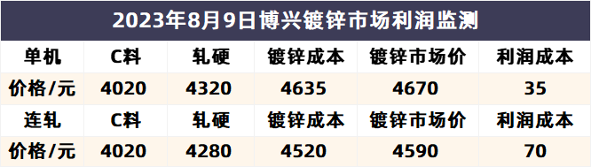 8月9日博兴镀锌市场利润检测