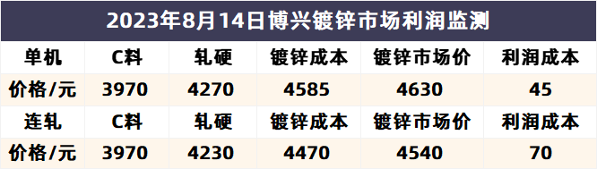 8月14日博兴镀锌市场利润监测