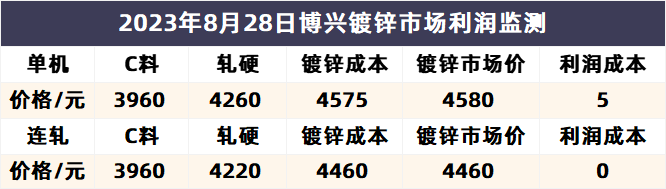 8月28日博兴镀锌市场利润监测