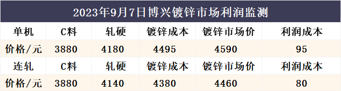 9月7日博兴镀锌市场利润监测