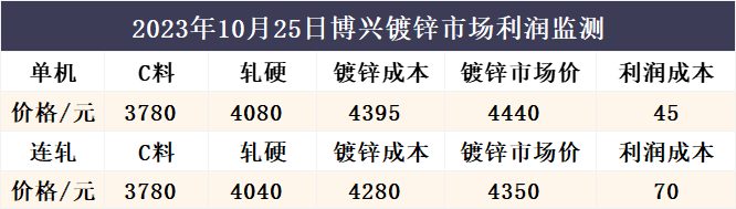 10月25日博兴镀锌市场利润监测