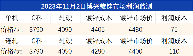 11月2日博兴镀锌市场利润监测