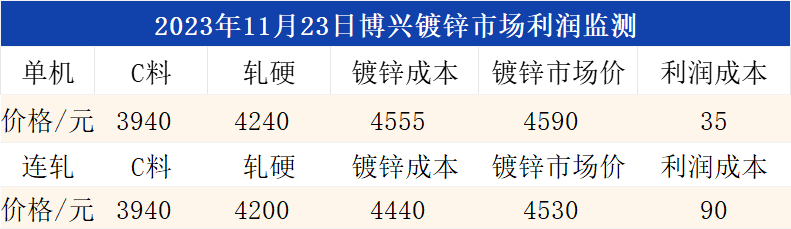 11月23日博兴镀锌市场利润监测