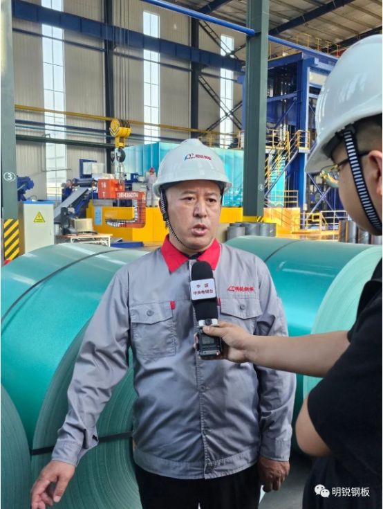 央视采访的报道:立足新起点、开拓新局面明锐钢板推出新产品“镀铝锌彩色耐指纹钢卷”