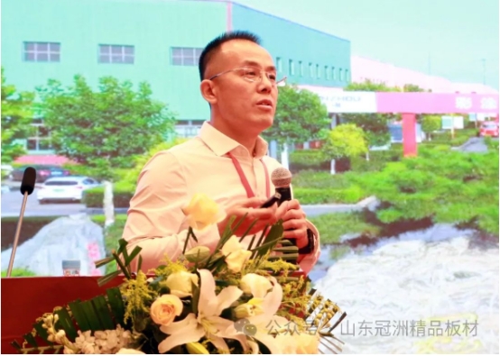 丁建平总监的演讲题目为《坚持朴素、系统的科学理论和科研驱动产业科学发展》。他从企业基本情况,冠洲精品板材技术研发及其在建设行业的产业化应用等方面做了详细介绍,分享了冠洲彩板的新技术、新工艺,展示了冠洲新产品、新形象,受到了与会嘉宾们的一致认可。