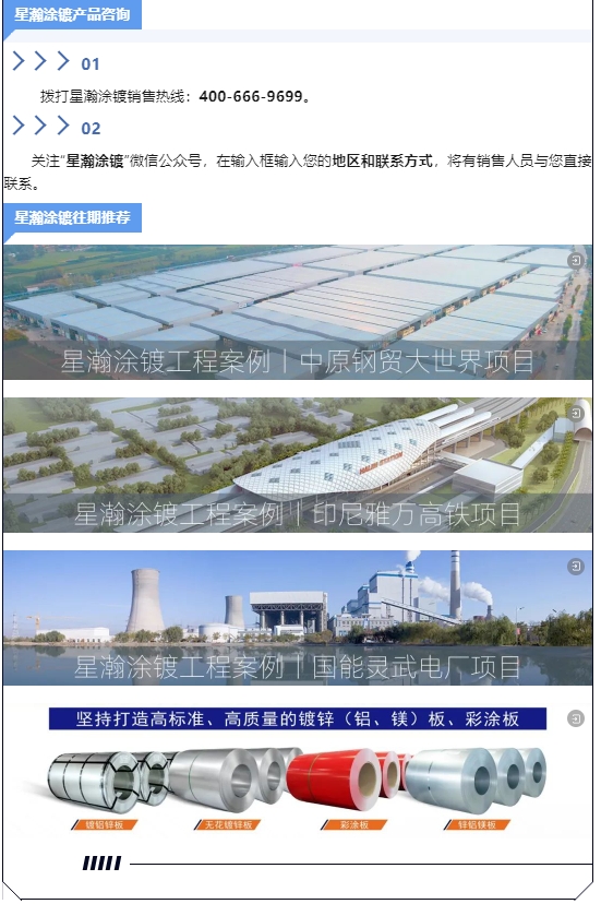 星瀚涂镀彩涂板是采用高耐腐、超耐蚀的锌铝镁、镀铝锌、镀锌等基板,表面涂覆国内外知名品牌油漆材料,进行烘烤固化而形成涂镀产品,表现出优良的耐腐蚀性、耐候性和持久的抗褪色性能。星瀚涂镀可提供规格为0.13mm-1.0mm*750-1250mm的各类彩涂产品,可满足不同客户、不同使用环境下的个性化、定制化需求。
