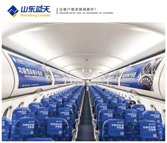 山东蓝天在胶东国际机场、青岛航空投放包机广告,成为行业第一家投放包机广告的企业!品牌影响力持续提升,高端化战略成效显著。
