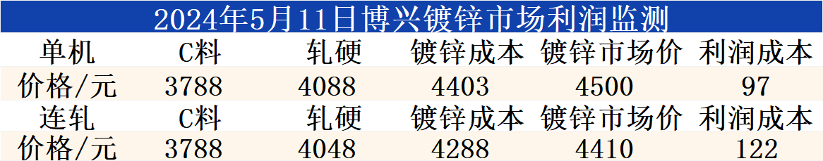5月11日博兴镀锌市场利润监测