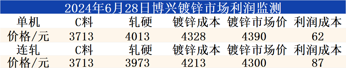 6月28日博兴镀锌市场利润监测