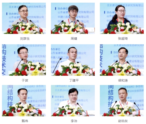 清华大学建筑设计研究院有限公司总工程师刘彦生,华东建筑设计研究院有限公司结构总工程师周健,核工业结构专业委员会主任委员、中国核电工程有限公司原副总工程师张超琦,北京市建筑设计研究院股份有限公司副总建筑师、第三建筑设计院副院长于波,冠洲品牌总监丁建平,山东大学教授侯和涛,北京市建筑设计研究院股份有限公司结构设计总监、总工程师甄伟,中信建筑设计研究总院有限公司总工程师李治,中国航空规划设计研究总院有限公司副总结构师赵伯友,同济大学建筑设计研究院(集团)有限公司工程技术研究院院长张峥,中国航天建设集团有限公司科技委总师王其明,中冶建筑研究总院有限公司教授级高级工程师许庆,山东建筑大学教授杨大彬,中国建筑西北设计研究院有限公司总工程师王洪臣,东南大学建筑设计研究院有限公司建筑五院总工程师张翀等15位行业专家在两天的会议时间里分别做了精彩的主题报告。