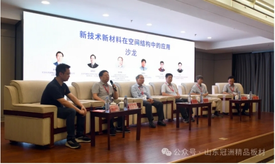 大会期间,嘉宾们来到冠洲精品板材生产基地实地参观考察,并在公司会议室举行了《新技术新材料在空间结构中的应用》主题技术沙龙。