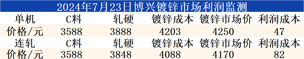7月23日博兴镀锌市场利润监测