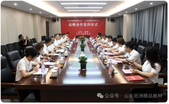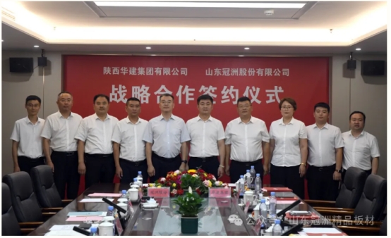 7月22日,陕西华建集团有限公司董事长李青一行到冠洲走访交流,实地参观冠洲精品板材基地,仔细了解企业生产经营、技术研发和产品应用等情况,双方举行座谈和战略合作签约仪式。公司董事长张昭出席活动。
